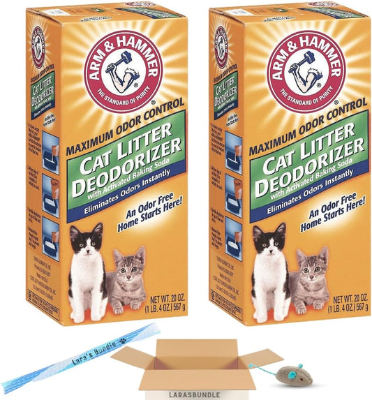 Arm & Hammer Cat Litter Deodorizer with Baking Soda 20.00 oz - Pack of 2 (40 oz in total) Litter Box Deodorizer Bundled with LarasBundle Catnip Mice and Spring Toy