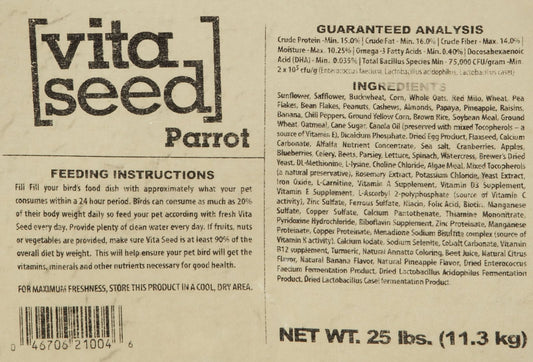 Higgins 466145 Vita Seed Parrot Food For Birds, 25-Pound