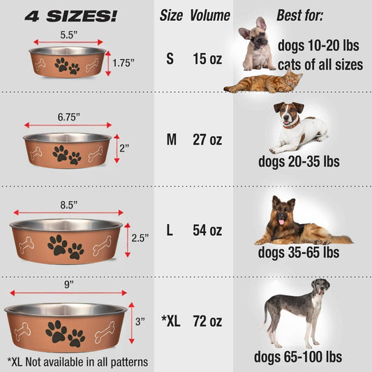 Loving Pets Bella Dog Bowls- Stainless Steel Dog & Cat Bowls - Spill Proof Dog Food Bowl, Cat Bowl, Puppy Essentials & Pet Supplies Great for Home & Travel (Large 35-65 lbs, Copper)