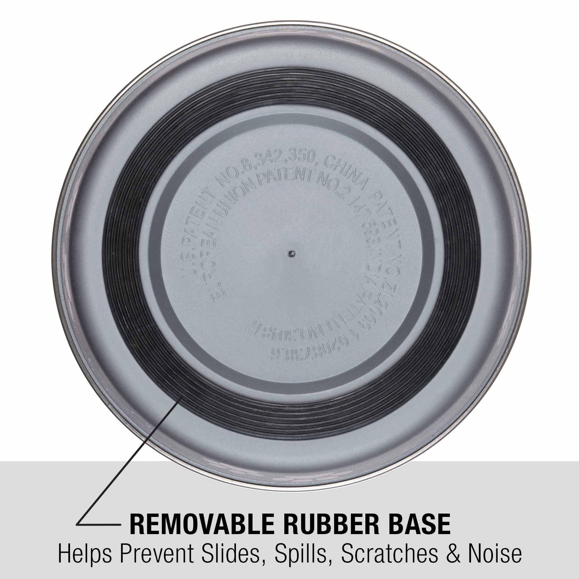 - Features a removable rubber base, helping prevent your dog from nosing their bowl all over the floor and causing noise or spills